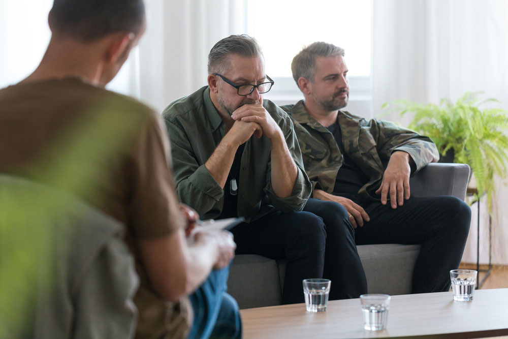Somatic therapy focuses on how stress and trauma are stored physically and how they influence behavior. Men learn to recognize physiological responses, regulate activation, and remain grounded under pressure.